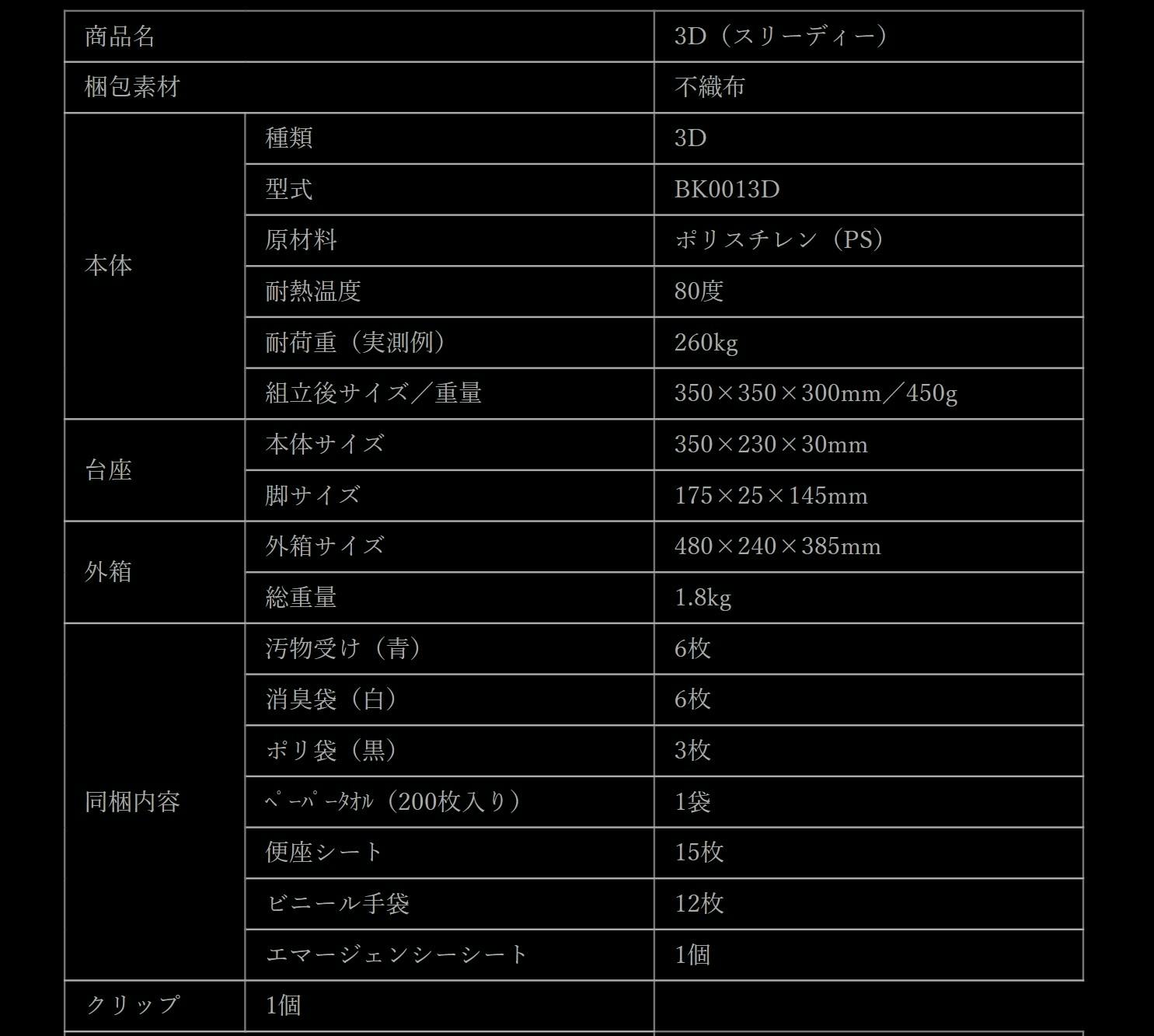 ●BENKING 3D(便器+消耗品セット1名 3日分相当)