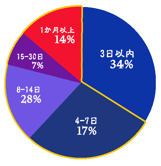 下記の図は内閣府が発表している、東日本大震災の資料から作った災害発生から仮設トイレ設置までの期間です。