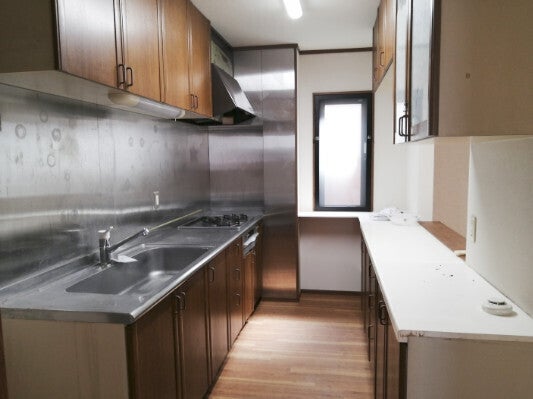 (↓改装前のキッチン。カウンター付きで広いです。)