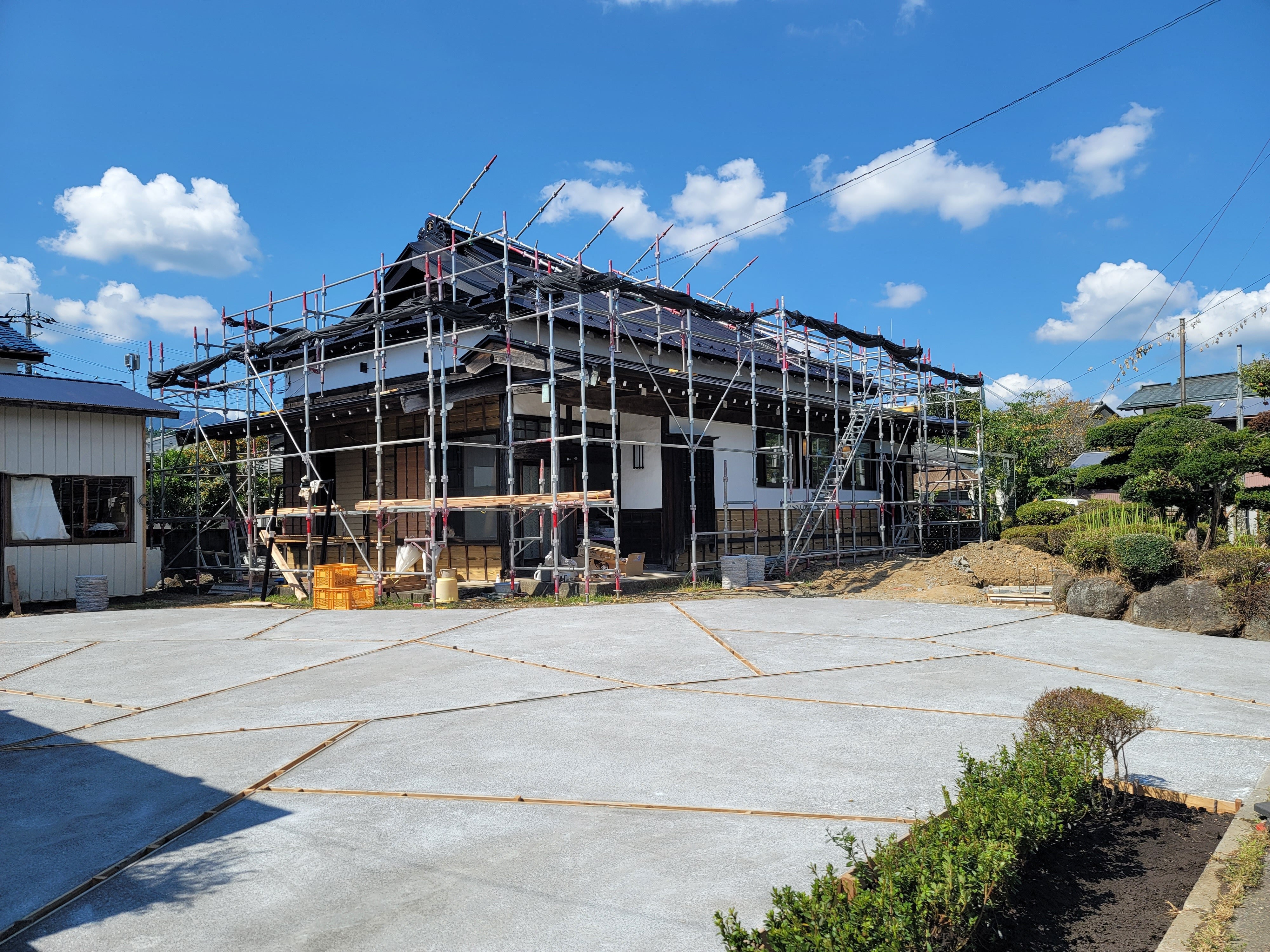 現在は外構工事に着手していて、駐車場スペースと植栽を配置し、門も構えます。こちらは2週間ほどで完成の見込みです。