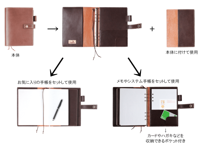 「綴じ手帳」と「システム手帳」を一つに。