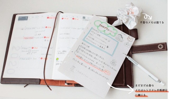 ●一時的なメモなどはリフィルに書く事で、後で容易に取捨選択ができる。