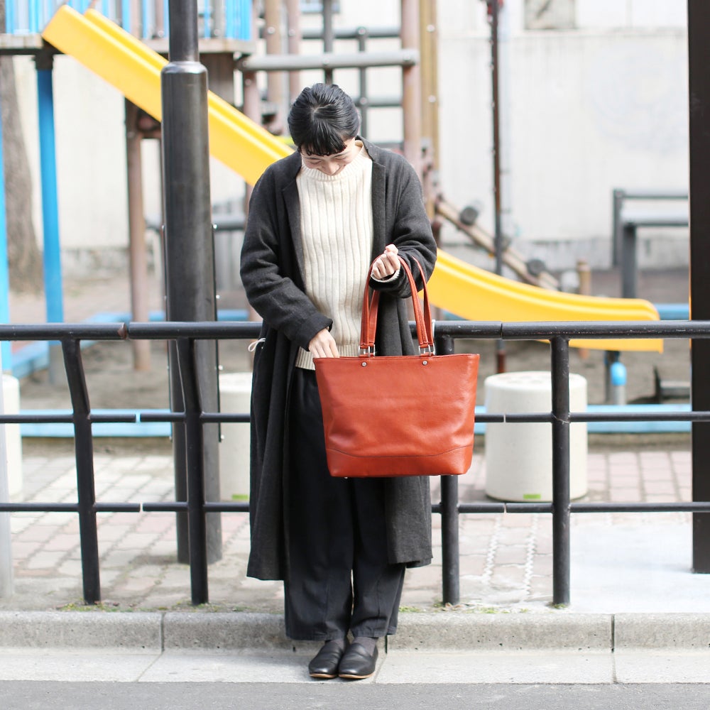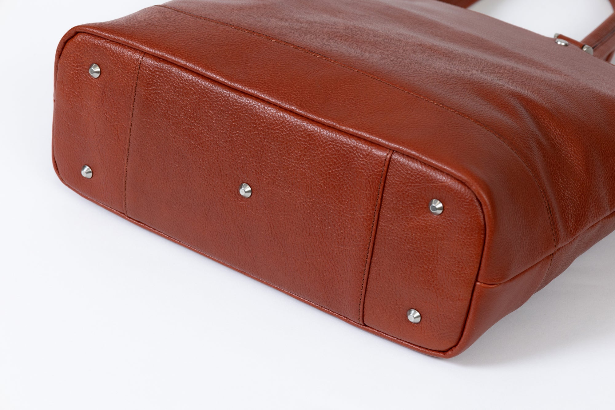 持ち手の根元にはシンプルなトートのアクセントとなるカシメが打ってあります。このカシメは持ち手の補強にもなっています。