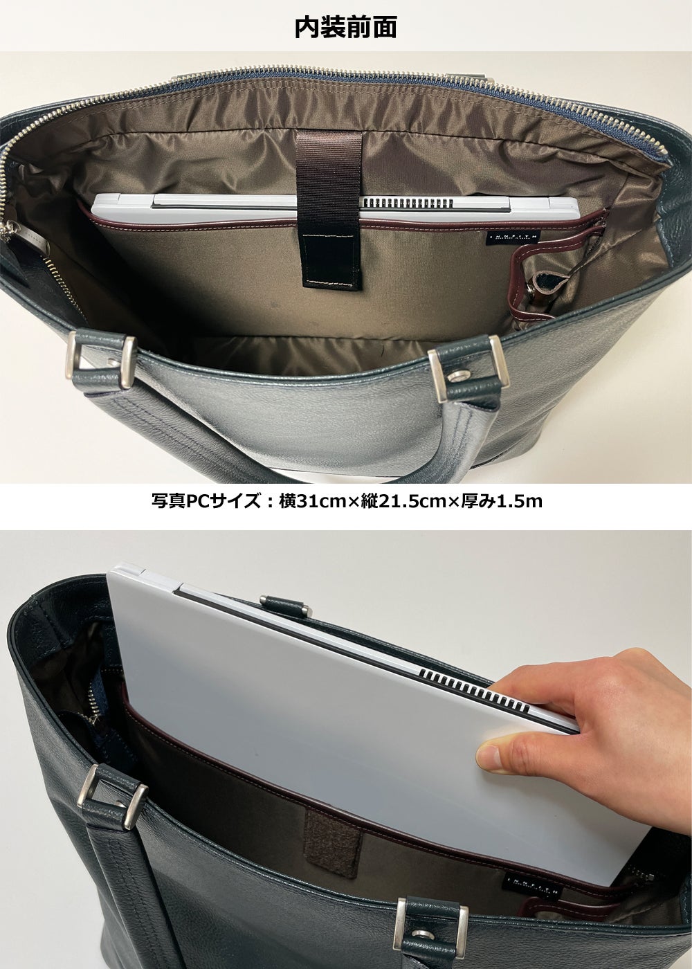 また鞄の底面よりも少し上の位置にPCポケットを取り付けているので、PCが地面と衝突する事がありません。