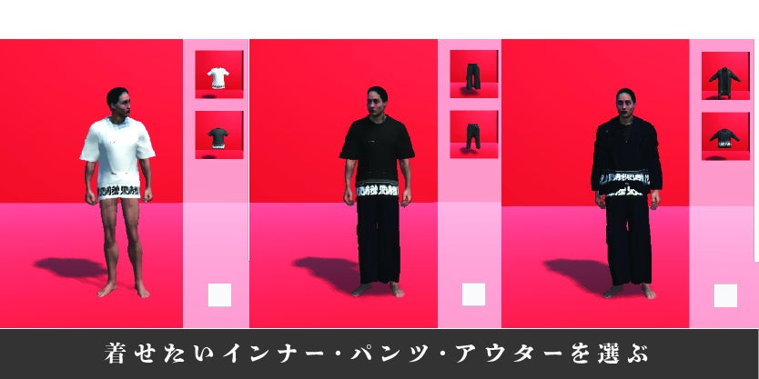 自身のアバターができたら、着せたいインナー・パンツ・アウターを選びます。