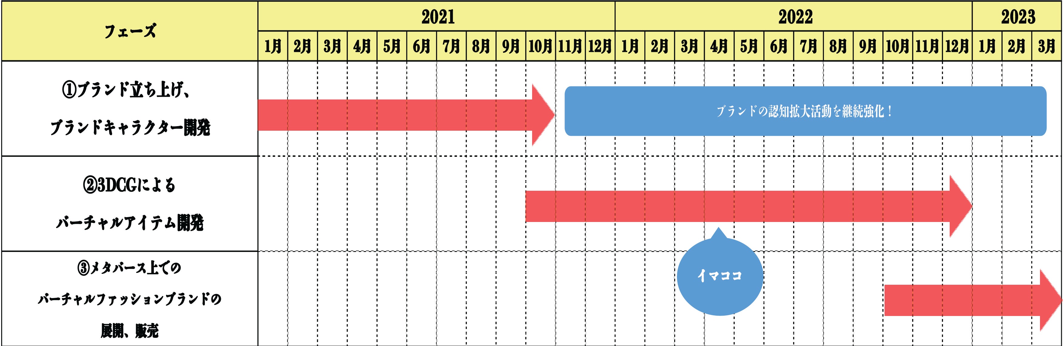 2022年後半には、バーチャル上のマーケットプレイスなどでトライアル的にブランドのお披露目をしたいと思っています。2023年にはさまざまなチャネルへ展開できるようにNFTを絡めた商品設計を行なっていきたいと考えています。