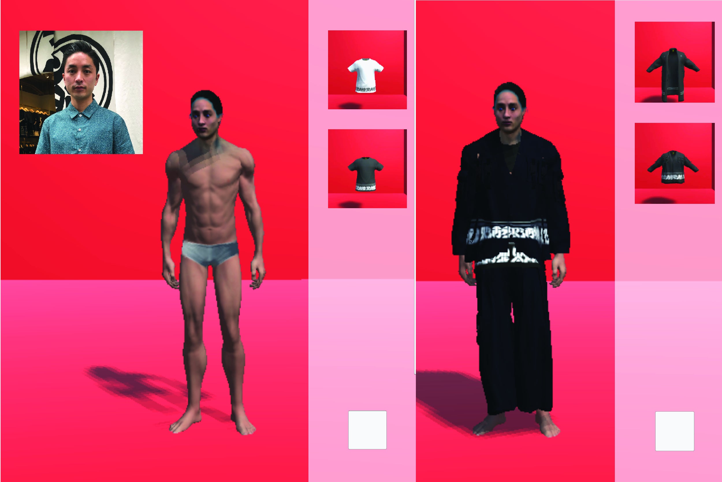 私たちが作ろうとしているデジタルフィッティングとは、オンライン上では表現しにくいファッション製品の着用イメージを、自身の顔のアバターが着てイメージを補完するというものです。