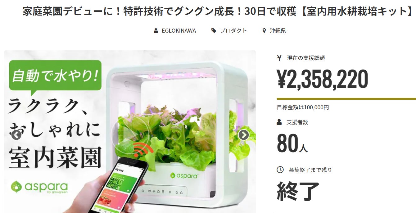 ご支援者の皆様、昨日無事にアスパラガーデン先行販売のプロジェクトが終了致しました。