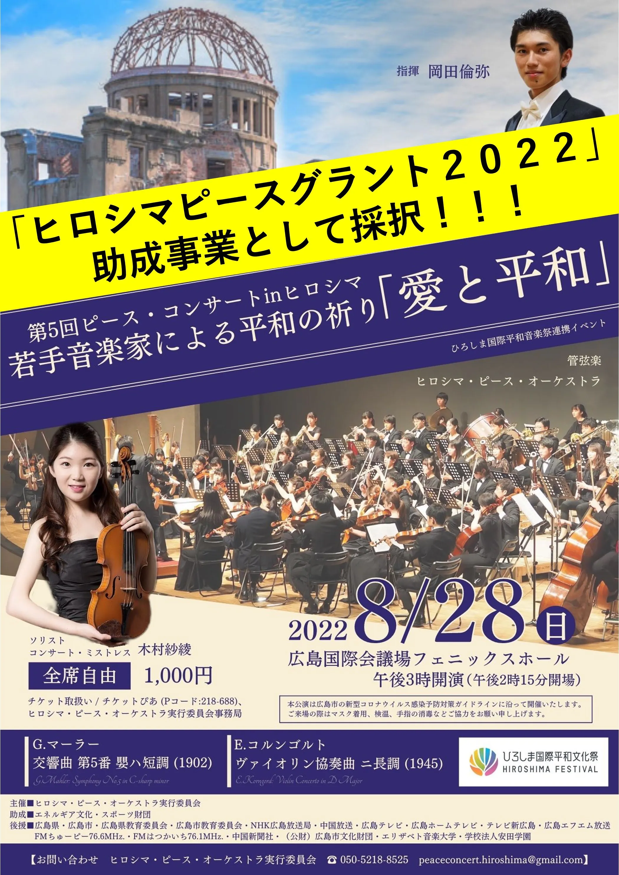 2022/07/11 19:00皆様こんばんは!ヒロシマ・ピース・オーケストラ実行委員会代表の岡田倫弥(おかだともや)です。いつも応援いただきありがとうございます。また、ご支援いただいてる皆様におかれましては、ご支援いただきましたこと、感謝してもしきれません。誠にありがとうございます。さて、本日は嬉しいご報告が・・・先日7月6日、本団体の活動が(公財)ヒロシマ平和創造基金の助成活動の一環である「ヒロシマピースグラント2022」助成事業として採択されました!!!我々のこれまでの活動を、歴史ある平和関連団体様に認めていただけたことが、何よりも嬉しかったです。ひとえに日頃から応援してくださっている皆様のおかげでございます。本当にありがとうございます。より一層気合いを入れて準備を進めていきます!引き続き、皆様の応援・ご協力のほど、どうぞよろしくお願い申し上げます。 〈リンク〉・(公財)ヒロシマ平和創造基金様ホームページhttps://www.hiroshima-pcf.or.jp/event-pg/index.html・ピースグラント2022 助成採択団体https://www.hiroshima-pcf.or.jp/event-pg/jyosei2022.html もっと見る