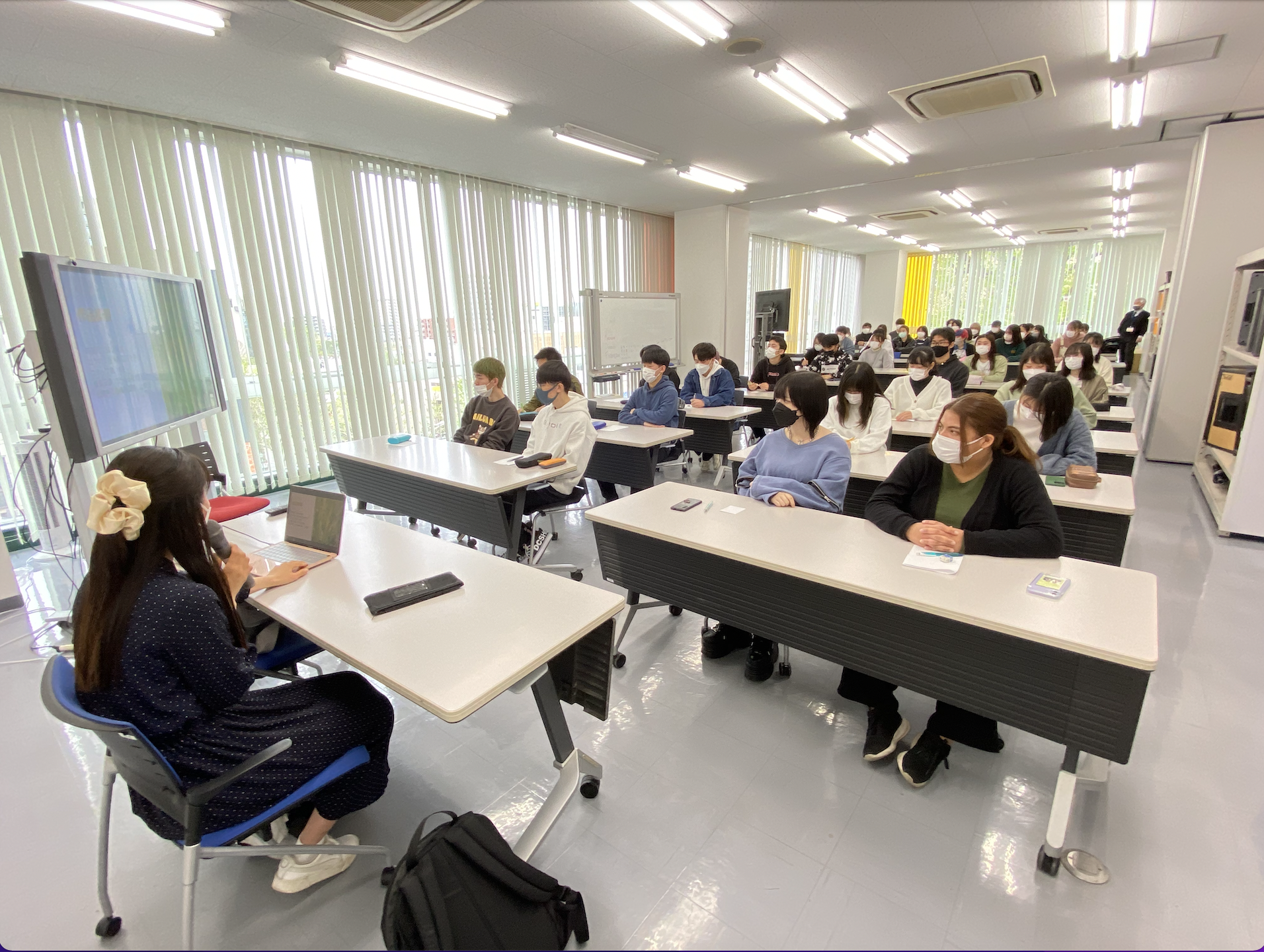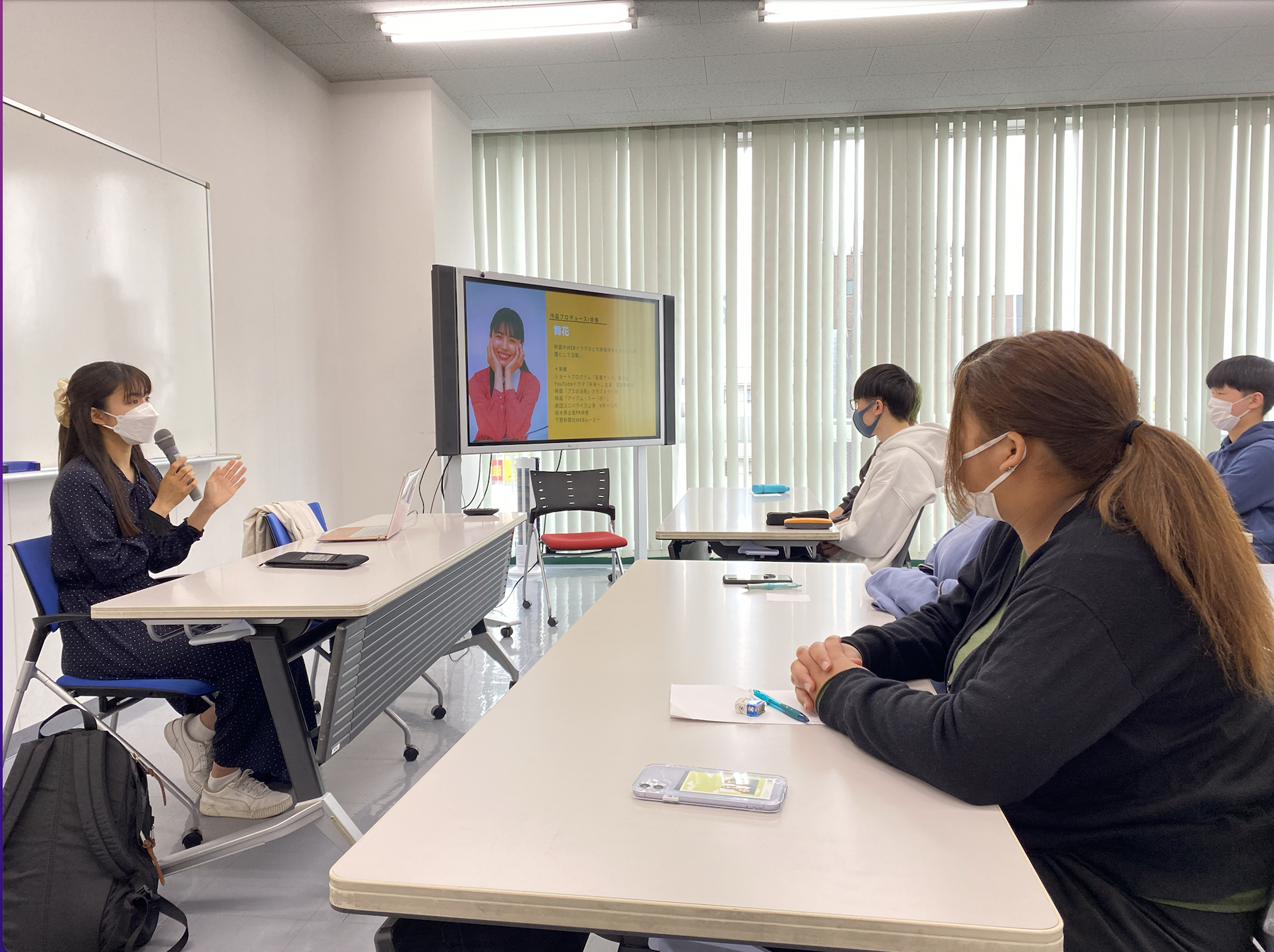 宇都宮メディアアーツ専門学校にて作品の説明をしている様子