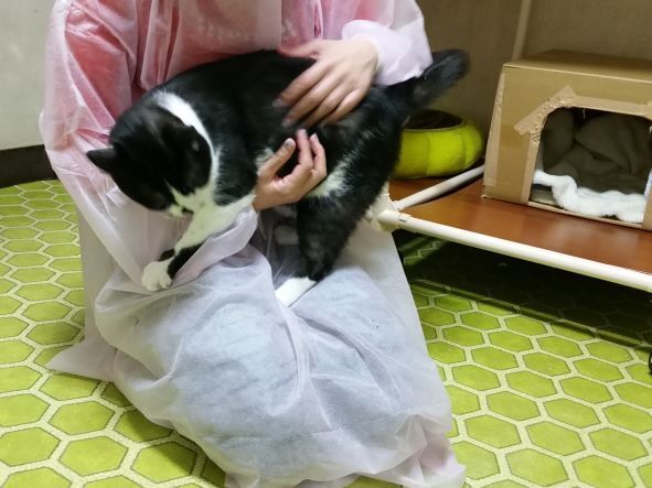 こちらのシェルターで猫ちゃん達に遊んで貰ったりお世話させて貰っています、看護師の布施と申します。
