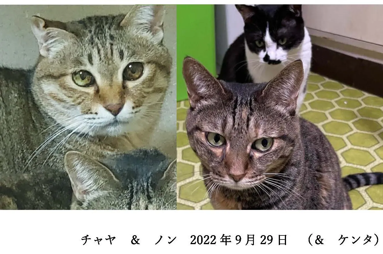 2022/09/30 01:38チャヤ と ノン は、浪江町の山の中の津島という素敵な山里に住んでいました。そこの ダウンタウン で2014年に保護されました。保護されたときから猫白血病のキャリアでした。ノンは先日報告したように目の奥に悪性リンパ腫ができました。沢山相談して、、抗がん剤を始めたんです。今は効いて症状が取れてきました!治療ができます。ありがとうございます! 治ることは難しいですが、、とにかく幸せに、苦しくなくが大切です。10月初めに、チャヤは内耳腫瘍の内視鏡手術になりました。おかげさまで、チャーちゃんの治療もできます。結果はここで間に合わなければ、当法人のfacebook, インンスタ、twitter で報告します。チャヤの無事、ノンの快適長生きを、、ご一緒にお祈りの程お願いいたします。 もっと見る