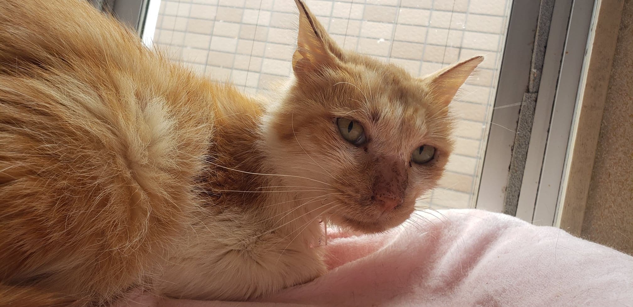 18日に急に元気がなくなり、通院しました。検査の結果、腎性貧血です。口内炎と皮膚炎が主な病気でしたが、腎機能が低下してきました。口内炎でもともと栄養価の高いペースト状のご飯をあげていたのですが、今は腎臓の悪い猫用の治療食に変えています。点滴をして、おしっこもよく出ていて、おかげさまで元気になってきました!写真は少し良くなった時です。ご飯をシリンジで食べさせて毎日皮下点滴を始めています。いまは、自分でチュールも食べられるようになりました。貧血は少しずつ改善していますが、あまりよくならない時は、心臓に負担がかかりますから、仲間から少し助けてもらい、輸血をしようと思います。グウジは2013年に浪江町の山の中の神社で保護したのです。それで、、宮司さんみたいなのでグウジです。人馴れは不十分な子です。ガリガリですが、長生きしてほしいです。ご支援をいただいているので、心強いです。ありがとうございます!皆でお世話を頑張ります!