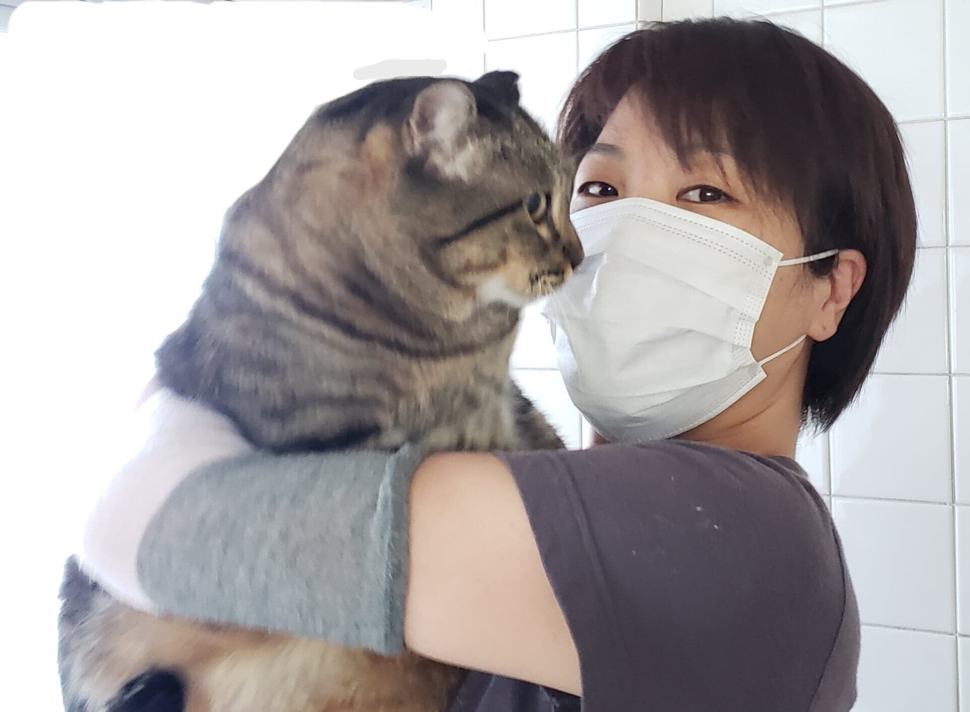 こちらのシェルターで猫ちゃん達に遊んで貰ったりお世話させて貰っています、看護師の布施と申します。