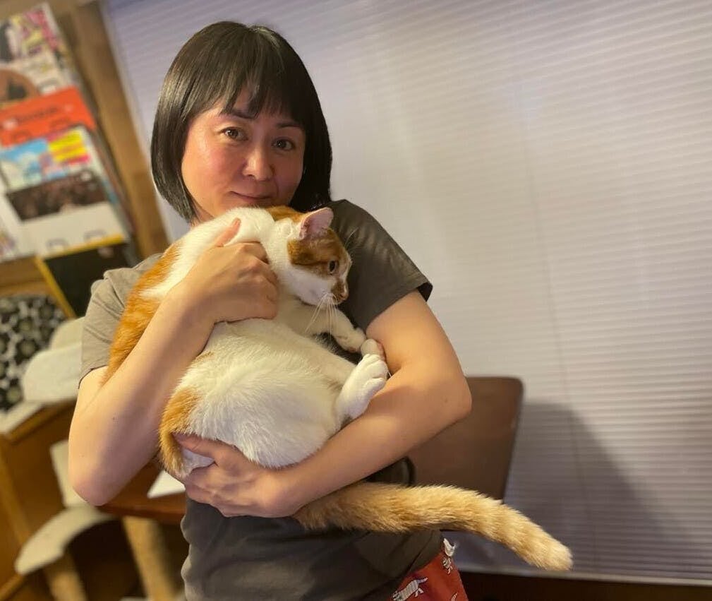 網代良子 さん(シェルター猫と遊んでくれるお姉さん) 🐱マツ(♂シェルター在住)