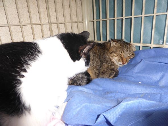 2022/09/30 01:38チャヤ と ノン は、浪江町の山の中の津島という素敵な山里に住んでいました。そこの ダウンタウン で2014年に保護されました。保護されたときから猫白血病のキャリアでした。ノンは先日報告したように目の奥に悪性リンパ腫ができました。沢山相談して、、抗がん剤を始めたんです。今は効いて症状が取れてきました!治療ができます。ありがとうございます! 治ることは難しいですが、、とにかく幸せに、苦しくなくが大切です。10月初めに、チャヤは内耳腫瘍の内視鏡手術になりました。おかげさまで、チャーちゃんの治療もできます。結果はここで間に合わなければ、当法人のfacebook, インンスタ、twitter で報告します。チャヤの無事、ノンの快適長生きを、、ご一緒にお祈りの程お願いいたします。 もっと見る