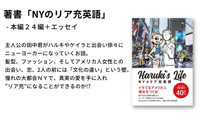現地じゃこれを知らなきゃ始まらない。でも日本ではどこでも教えてくれない!アメリカ在住のハルキが、実際によく使っている“厳選・最新フレーズ”を集めました。ハルキのNYライフを通して、楽しみながら英語が学べます。エッセイでは、日本人であるハルキが、それぞれのエピソードから見えるアメリカの文化について深く深く語っていきます!