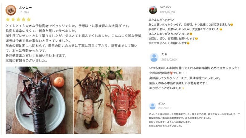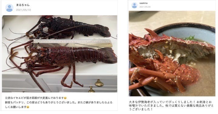 ・売り先のなくなった伊勢海老の販路を拡大するために産直サイトに登録し、ネット販売を開始。