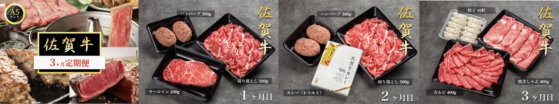 全国のブランド牛の中でもトップクラスの肉質基準をもつ「佐賀牛」や「黒毛和牛」を毎月お届けします。