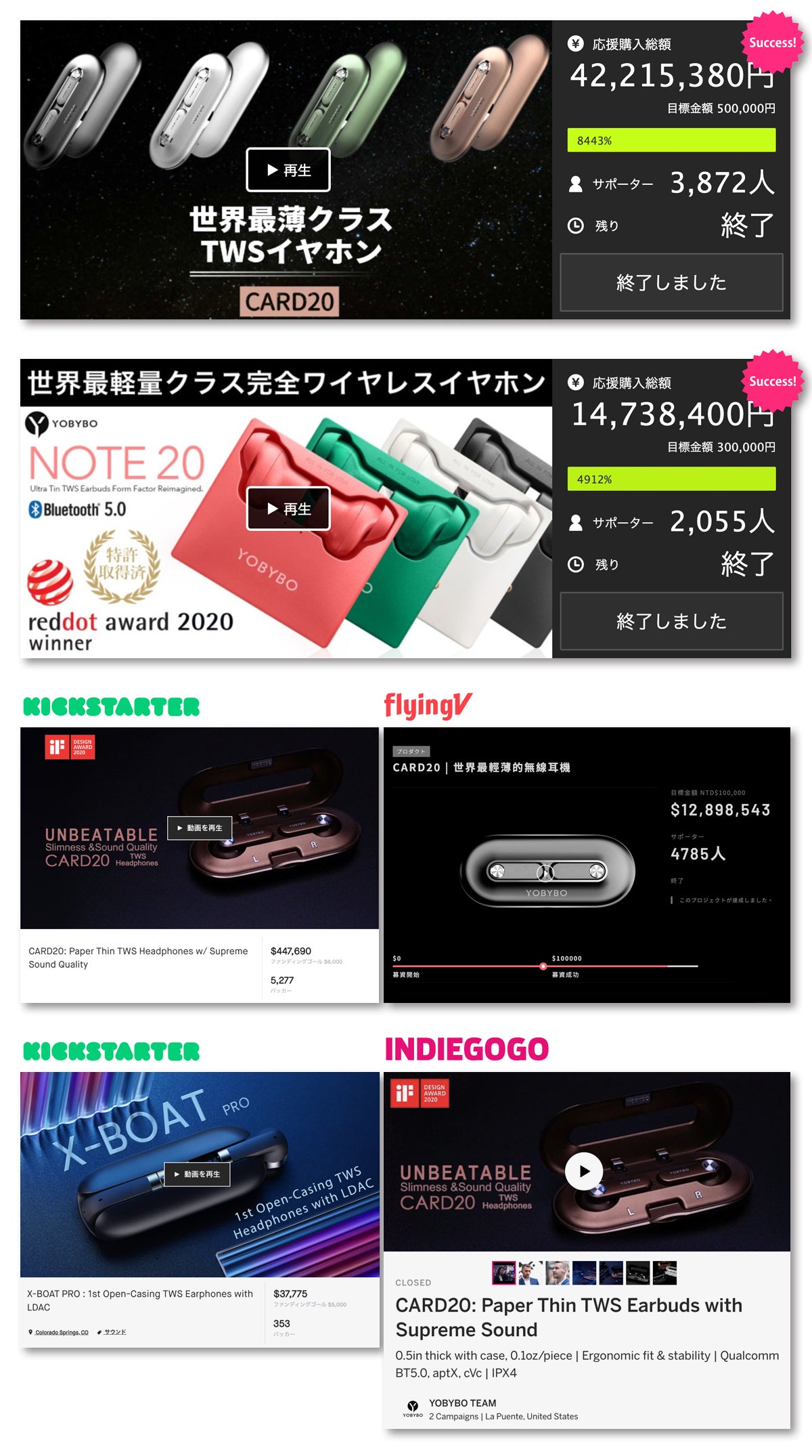 2022/07/19 14:46こんにちは、YOBYBO Japanでございます。お届けいたしましたX-BOAT Proにつきまして、同梱されております取扱説明書の記載に誤りがございましたのでお知らせいたします。項目:【強制ペアリング解除/リセット】※左右のイヤホンのペアリングができない場合のリセット手順です。正しい手順は、以下の画像をご確認ください。以上、お手数ですがご確認ください。取扱説明書の誤りにより、ご支援者の皆様にご迷惑をおかけいたしましたことを深くお詫び申し上げます。引き続きYOBYBO Japanをどうぞよろしくお願い申し上げます。 もっと見る製品の出荷を開始いたします!