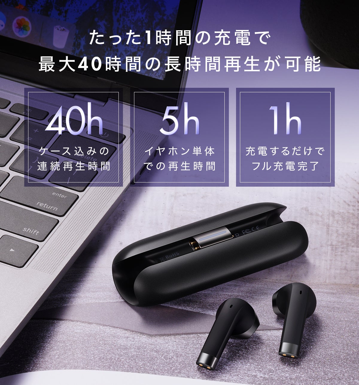 イヤホン重量はたったの3.9gで、長時間利用をしていても、無重力のような快適な利用体験をご提供いたします。