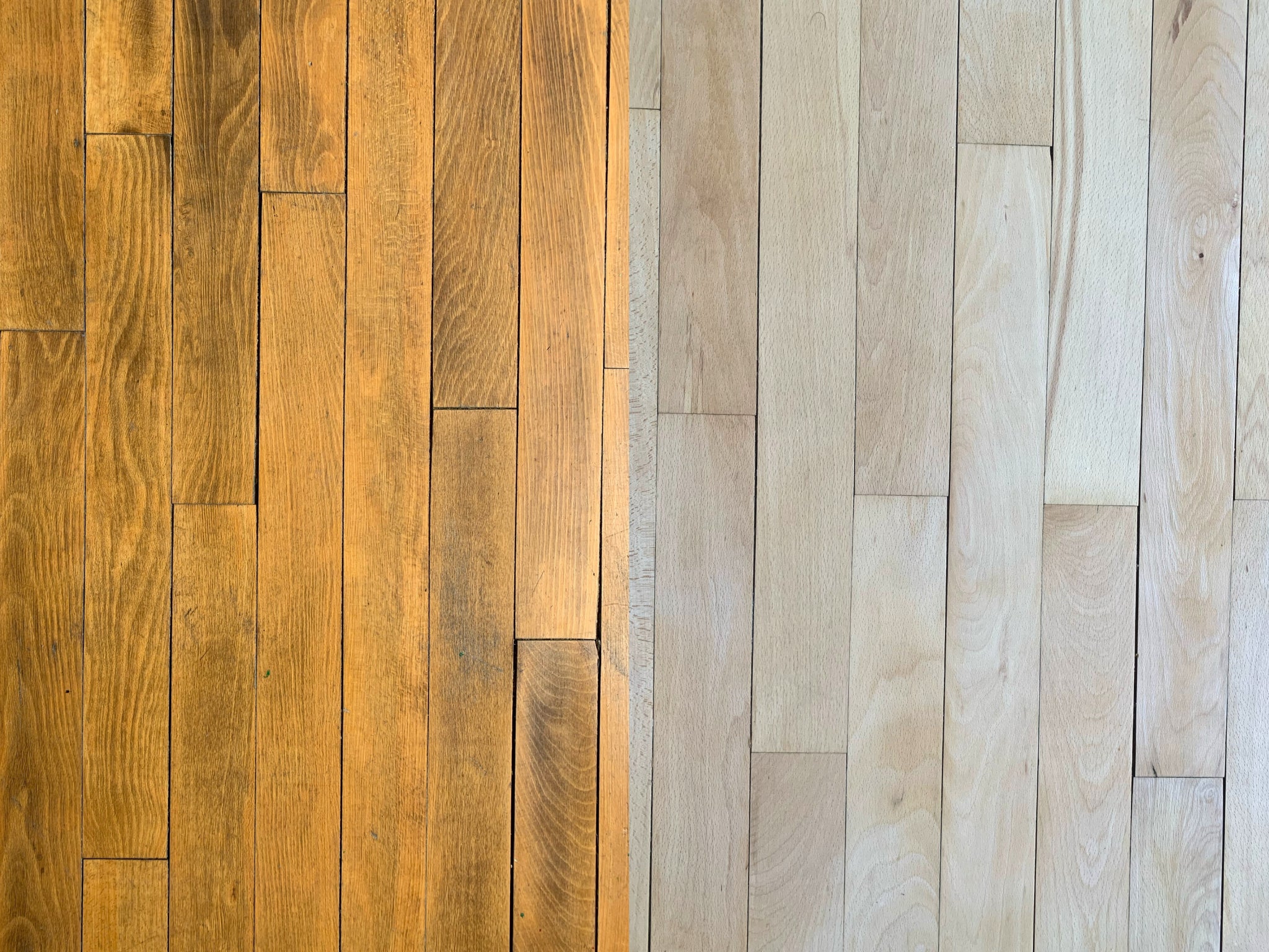 オフィスや各会議室の床は、1度磨いただけでこんなにナチュラルに!