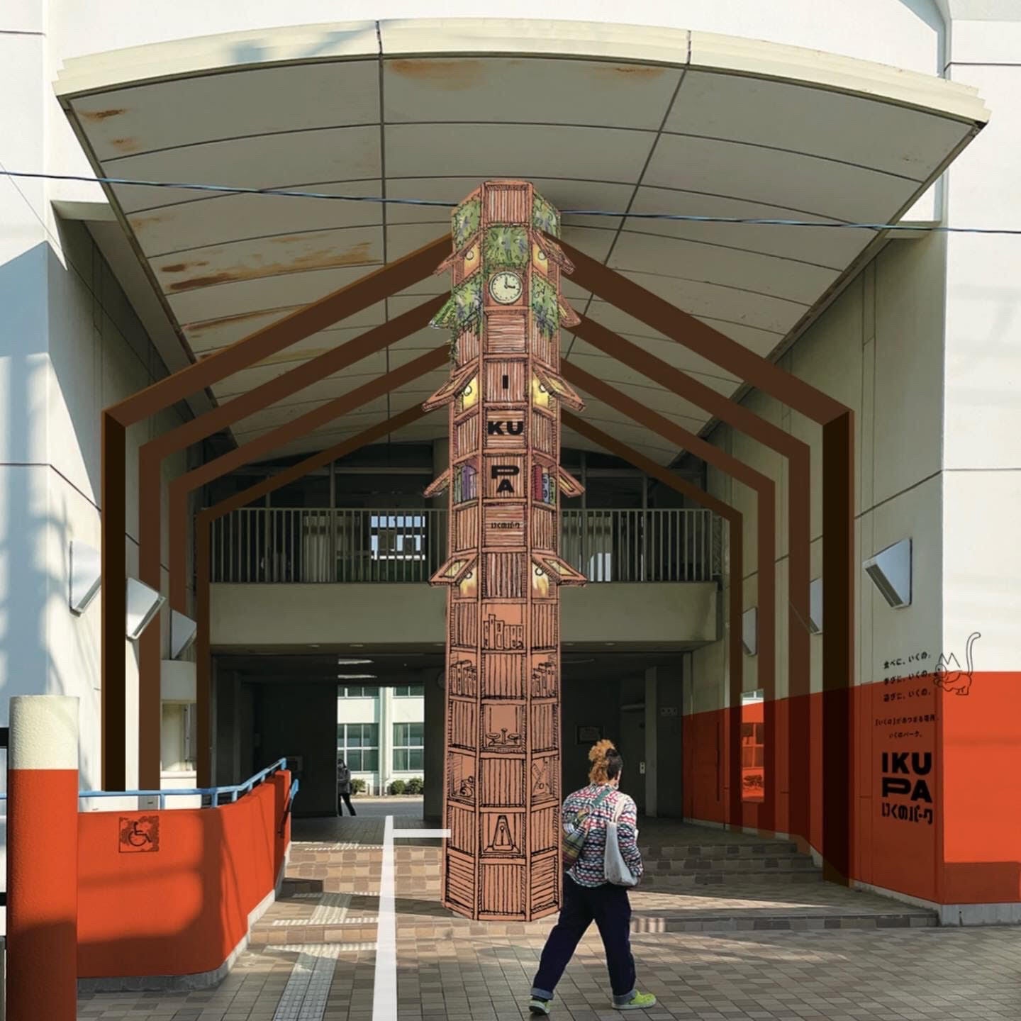 そんな入口に立っている大きなポールに『キヲクの塔』が作られます。