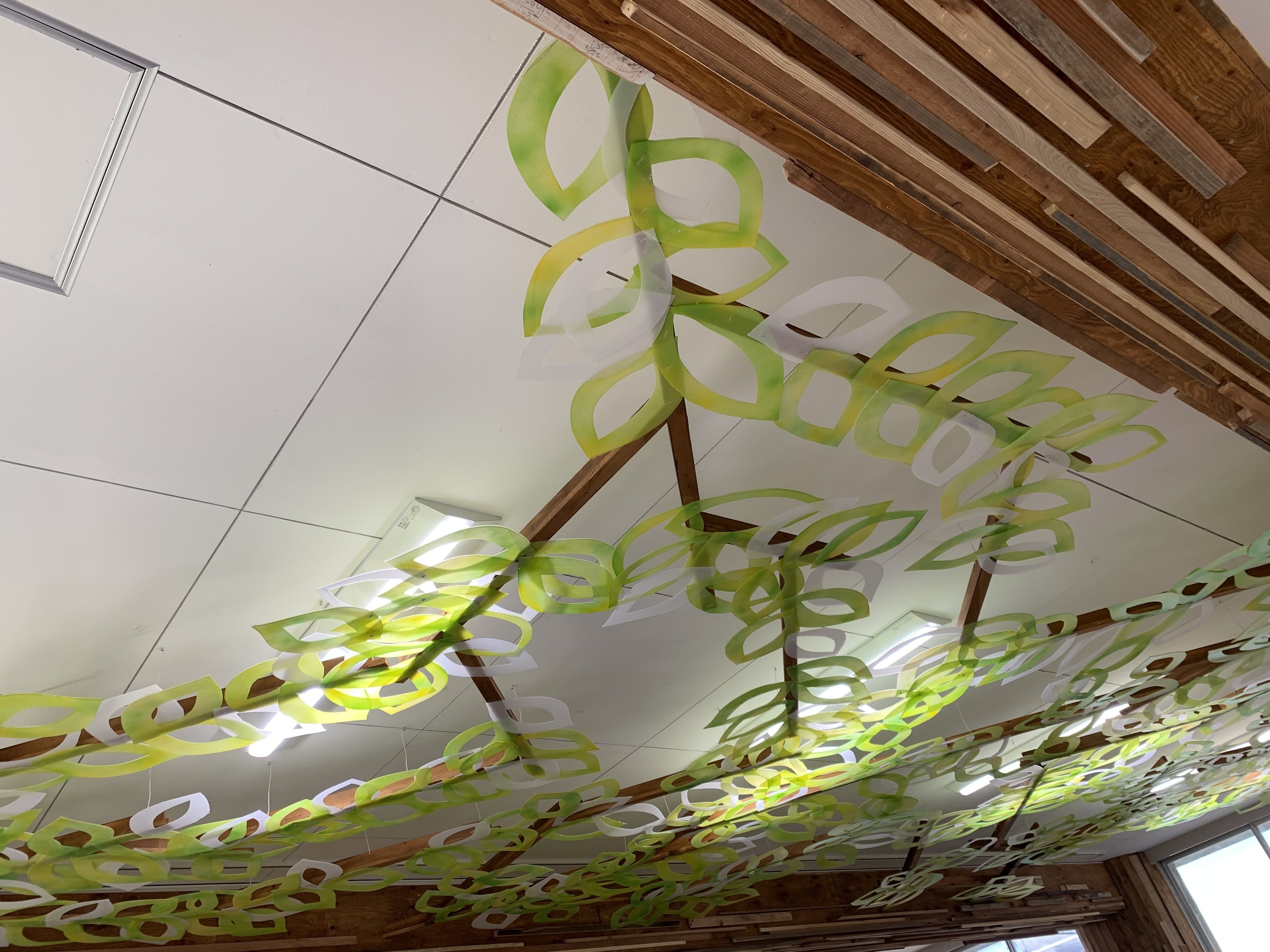 天井には葉をイメージした飾りが!