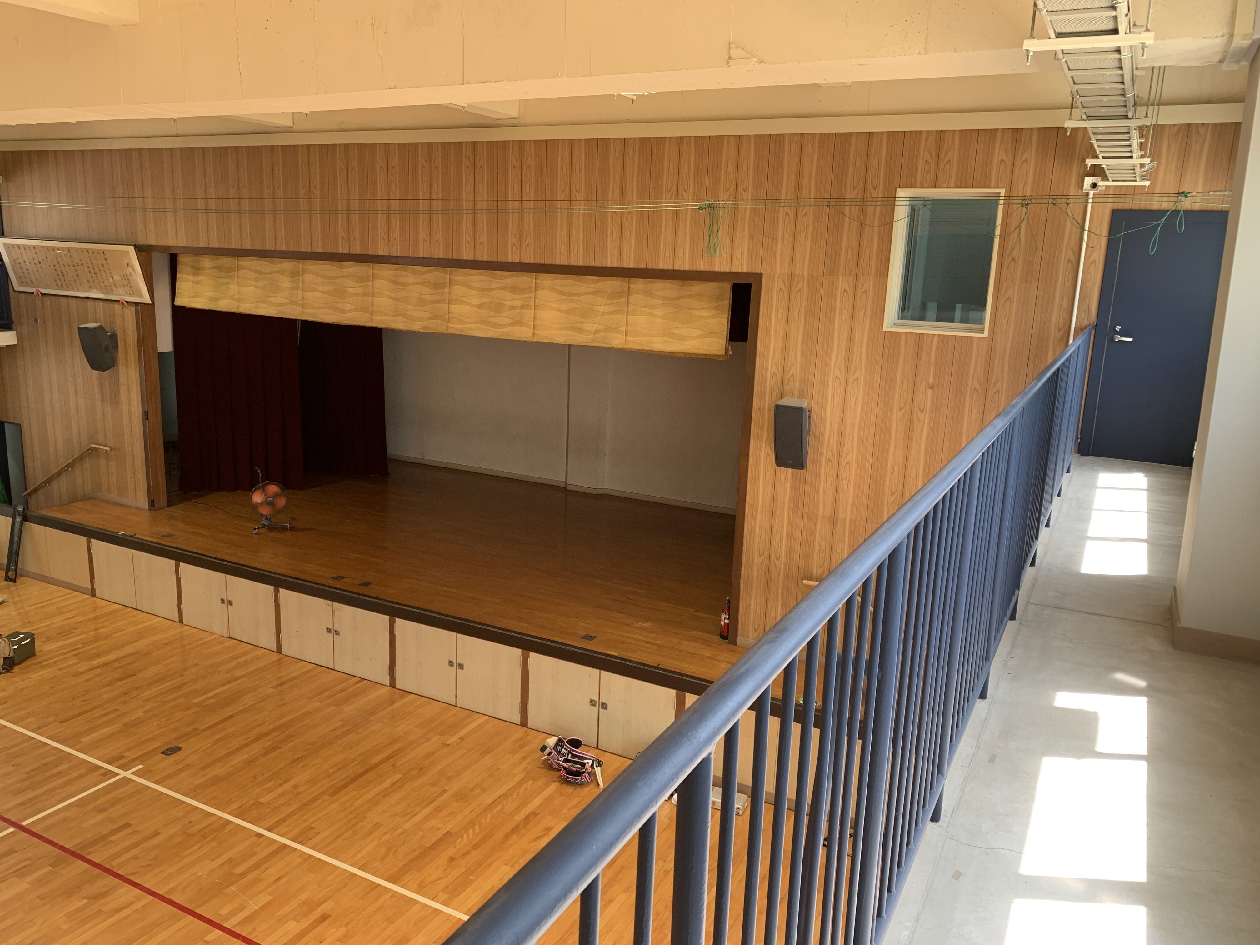 2階の柵やバスケットコート、消火器などはきれいな紺色に塗り替えられていました。