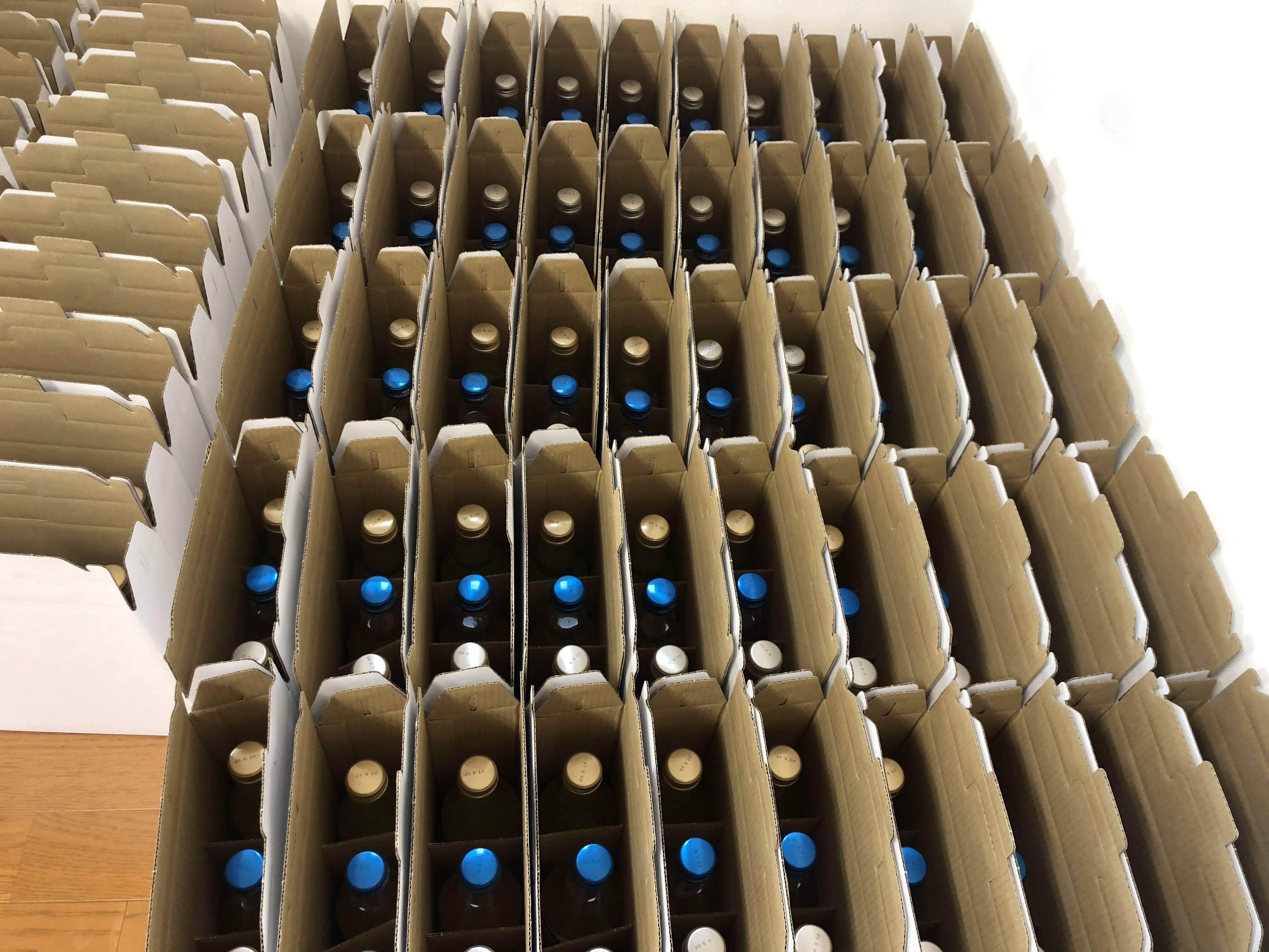 1枚1枚ビンに貼り、箱詰めを進めました。