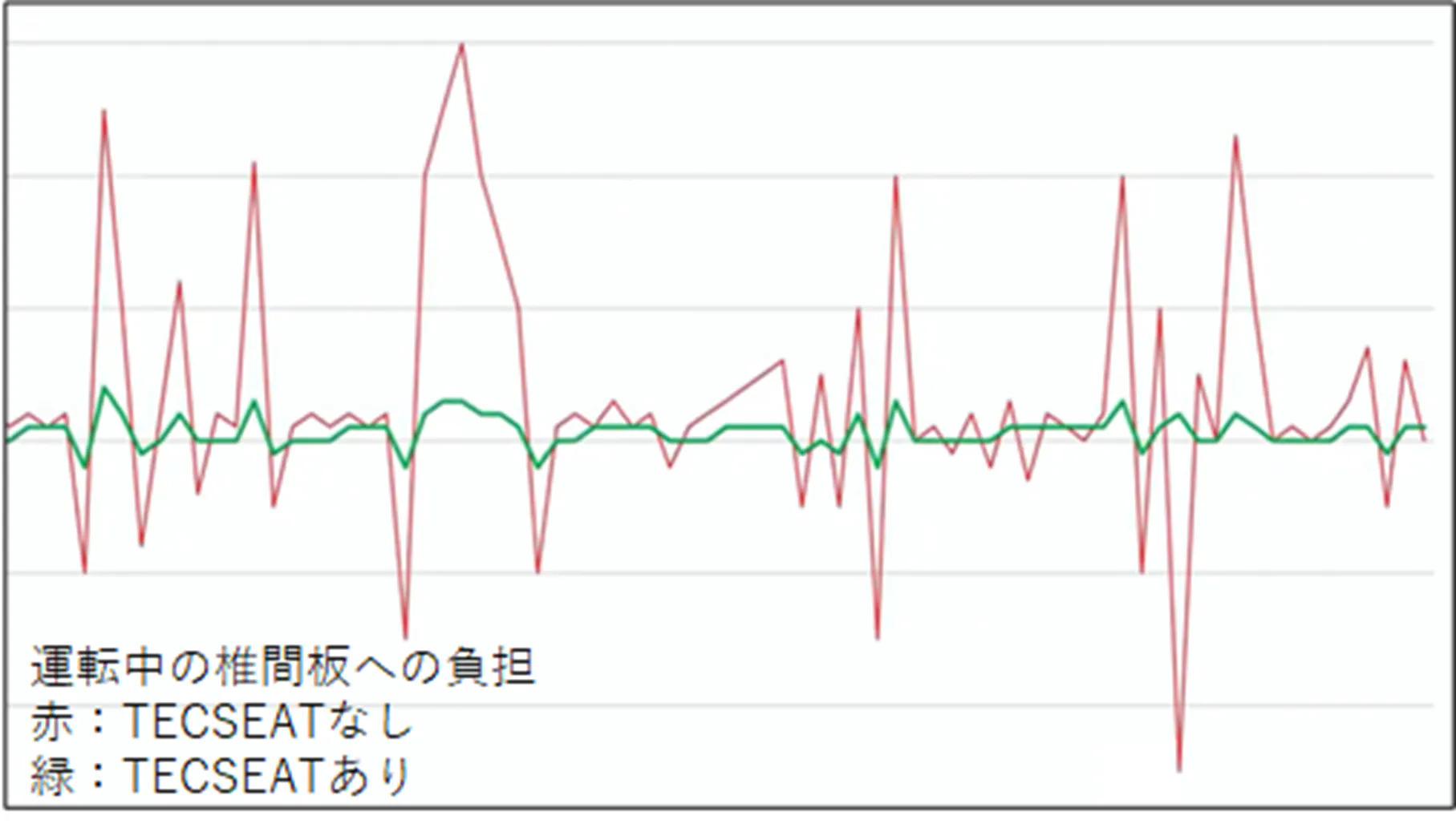 車の運転中にかかる脊髄への負担を計測したところ、SoftairSeatHybridがクッションとなり体圧分散し最大90%負担を軽減することがわかりました。