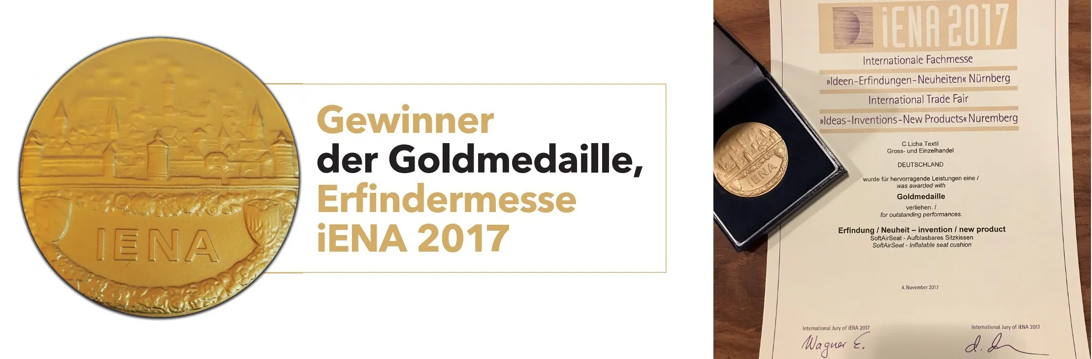 TecSeat GmbHは家族経営の企業としてHans-Licha氏によりドイツで設立され健康な体を維持する事に役立つエアクッション機能を生かした製品を開発しています。2017年に起こった背中の負担トラブルはドイツで28万件を超え、この問題を解決すべく2年かけて日常生活で使える用に発明しされたエアクッションはiENA International Trade Fair 2017(発明フェア)で金メダル獲得するなどドイツ国内で評価されてきました。SoftAirSeatHybrid はHans-Licha氏 が世界中を移動する時に慢性的な背中の痛みに悩まされ、このトラブルを解決すべく試作と改善を繰り返し製品化した画期的なエアクッシュンです。