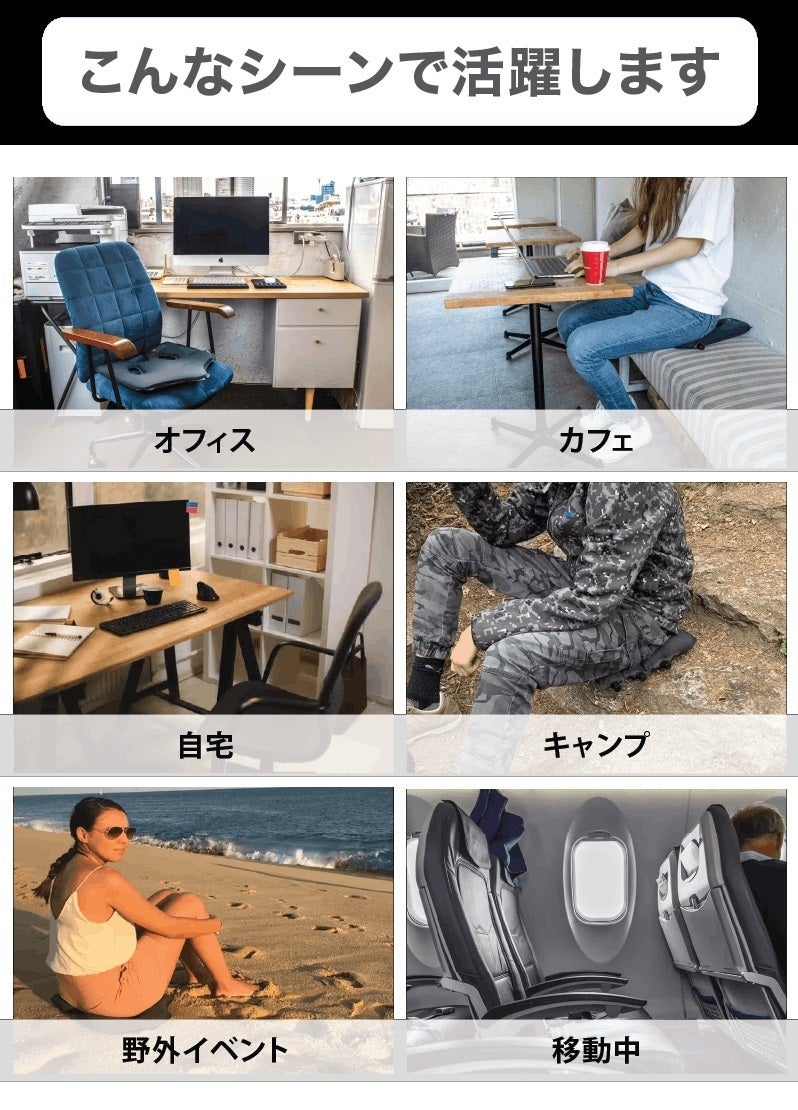 A)オフィスや自宅、カフェ、コワーキングスペースの椅子からキャンプやフェスなどさまざまな場面で活躍します。