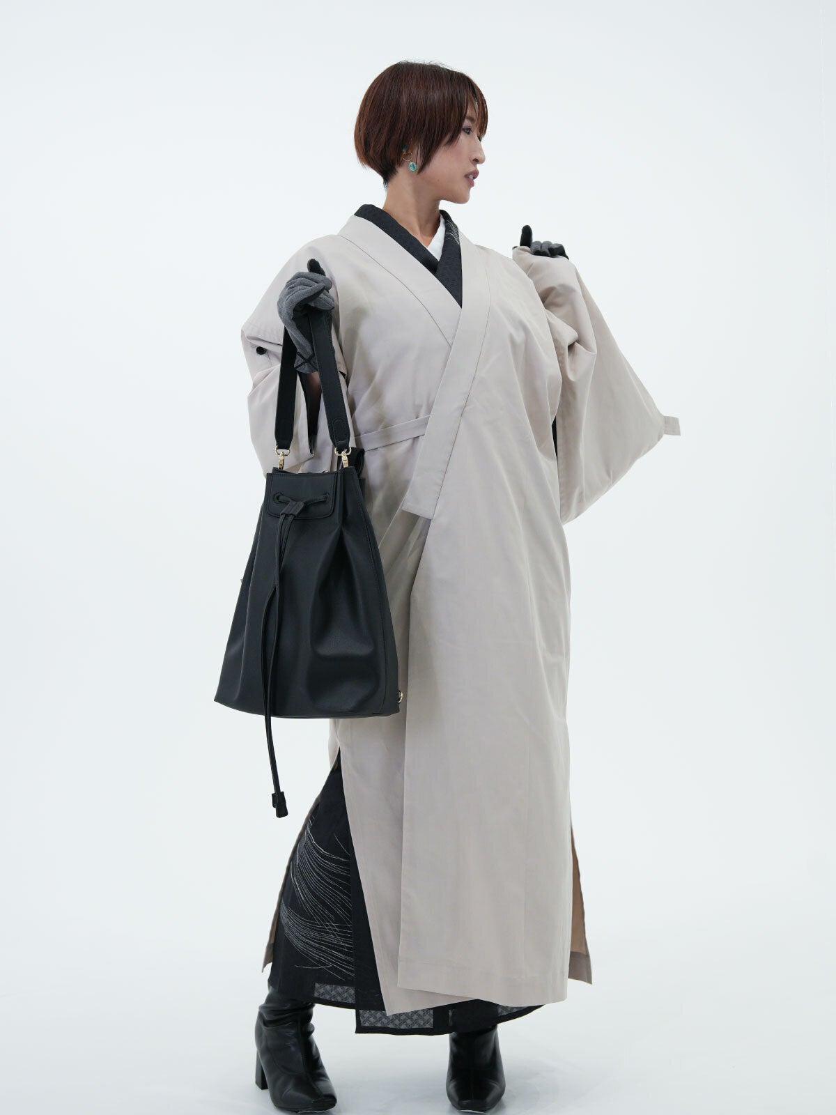 トレンチコートなのに着物。