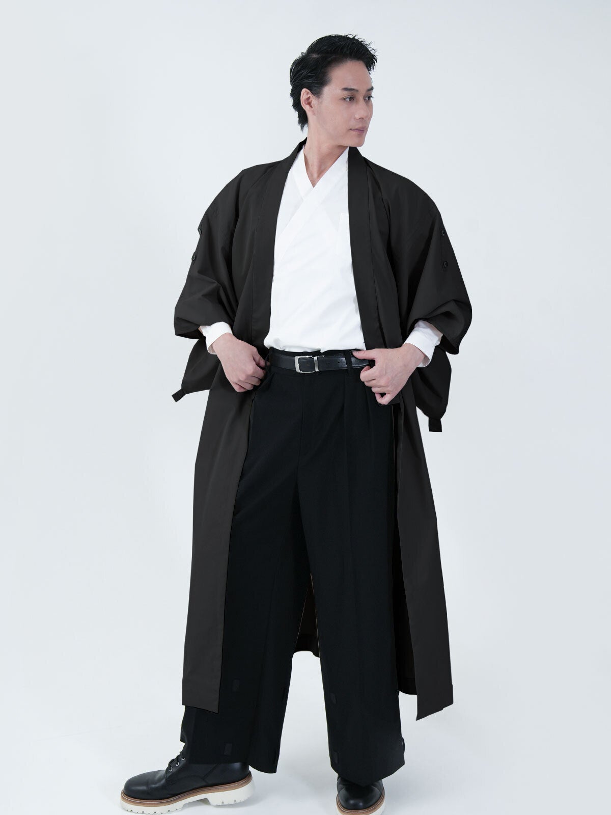 伝統的な着物の上に軽やかに羽織っても、フォーマルなスーツの上に羽織ってもどちらも楽しめます。