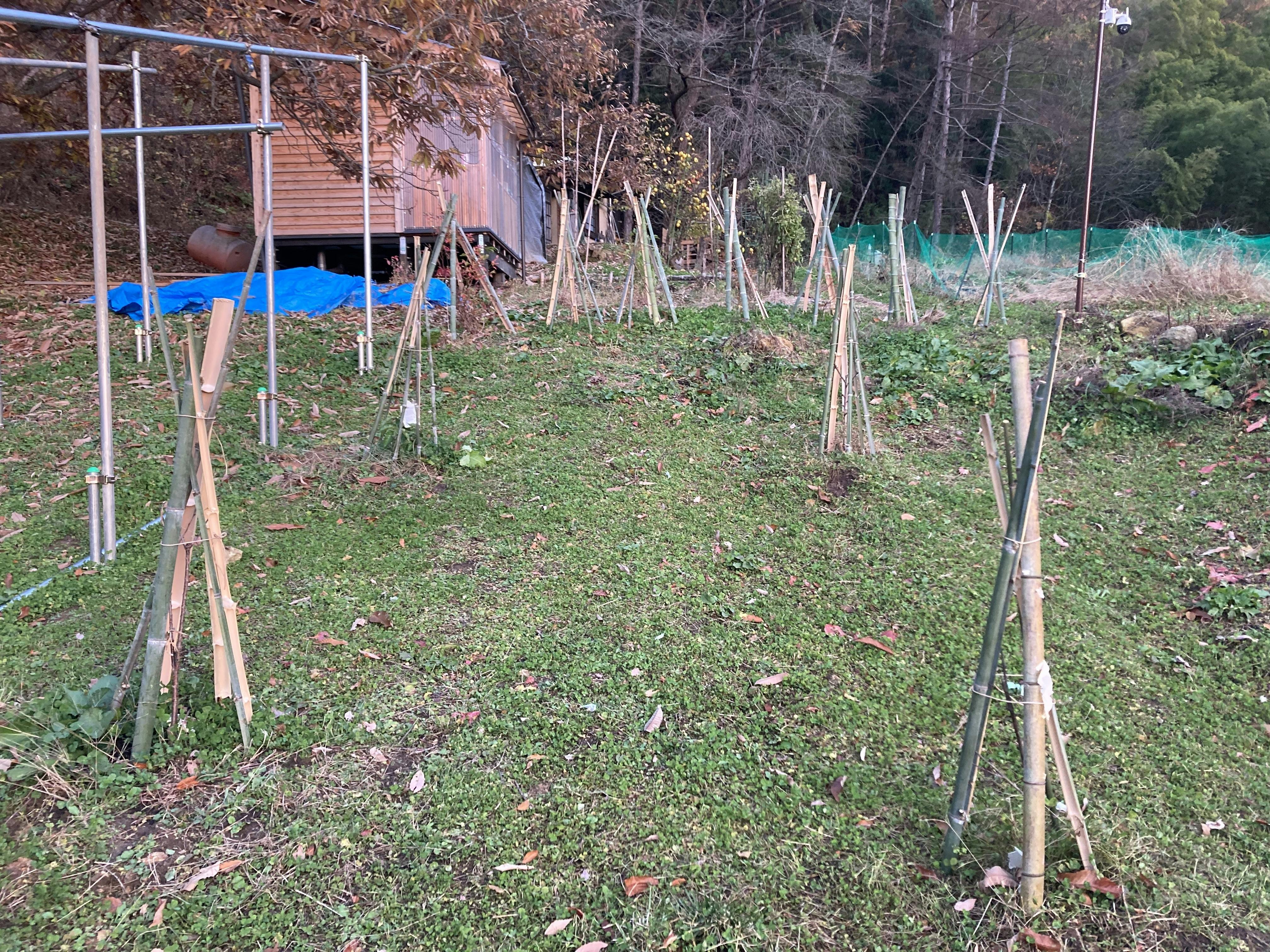 2022/11/24 21:27今日は雪が降る前に作物を守るための雪囲いの作成材料となる竹の伐採をメインに行いました!そして伐採した竹をナタで割って雪囲いの制作、初作品。たくさん作って慣れていきたいです(^^)作業は雪が降る前が勝負。引き続き頑張りたいと思います! もっと見る