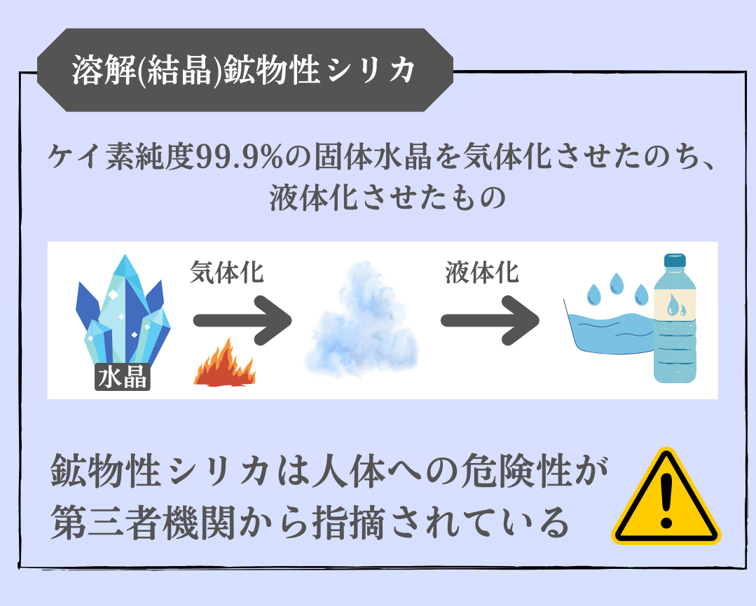 鉱物性シリカ(Sio4)は石英や水晶などの鉱物由来のシリカのことです。