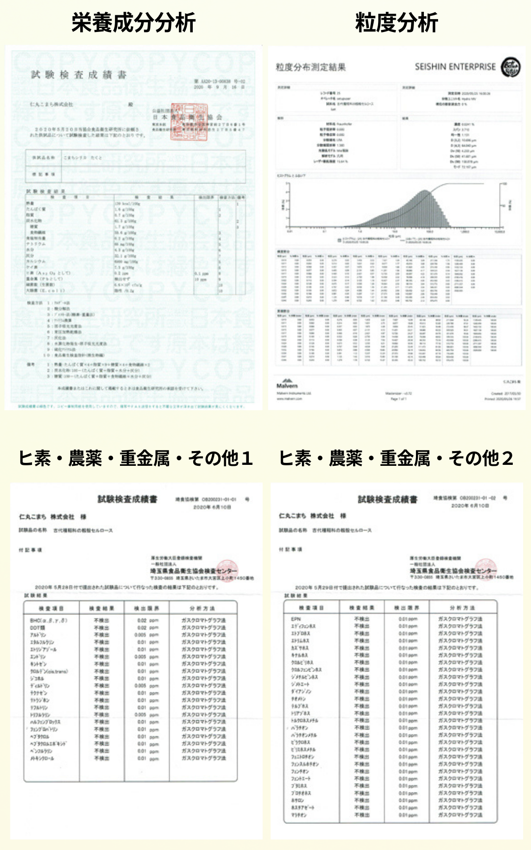 ヒ素・農薬・重金属といった有毒性物質の検出が一切なかったことを証明しています。