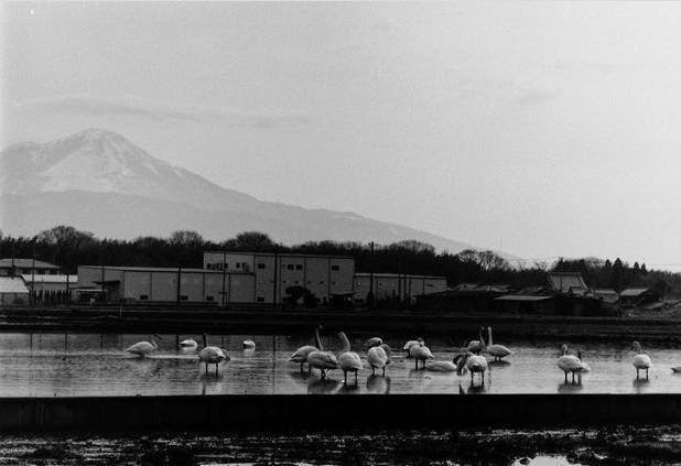 沢山の先生や仲間達と学びながら独自の自然循環型を模索し我が家の田圃にはコハクチョウ舞い降りる田となりました。この写真は僕がフィルムカメラにて撮影した写真です。父の姿を僕は幼き日から今まで隣で共に学び就農して20年以上となりました。
