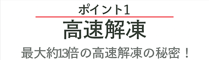 空気と触れる面積が多いので、一度にたくさんの熱交換が行われ、表面から伝わった熱をより大きい面積で空気中に逃す事ができ、早く食材を解凍できます。