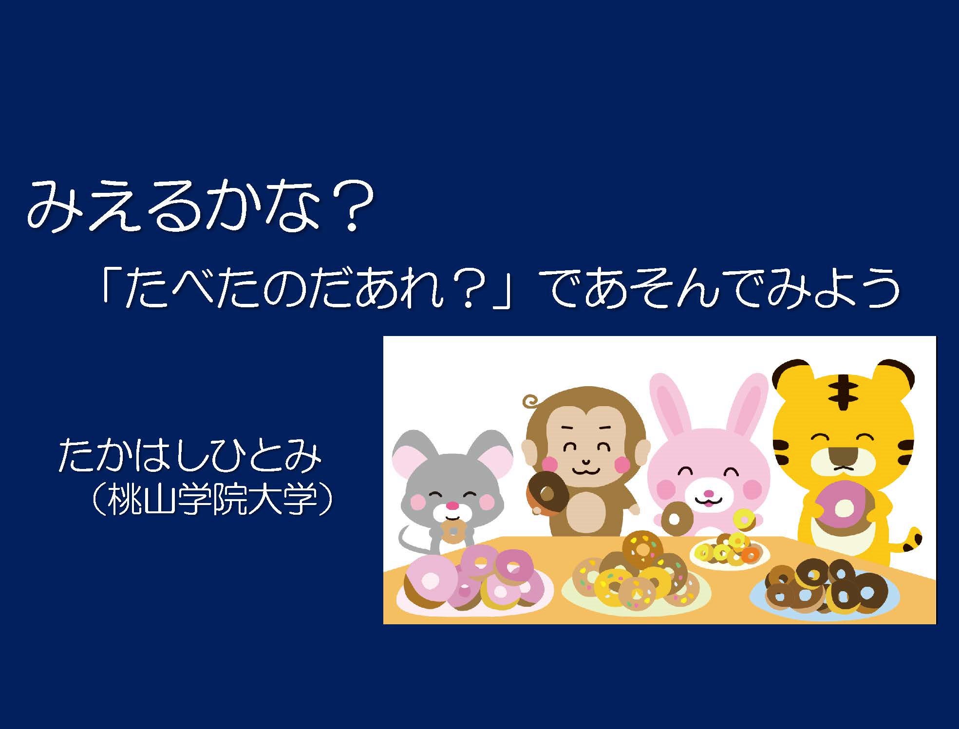 この情報を伝えるために、育児中のママ・パパ(幼児親子)を対象に、講演やワークショップで「たべたのだあれ?」視力検査を紹介してきました。
