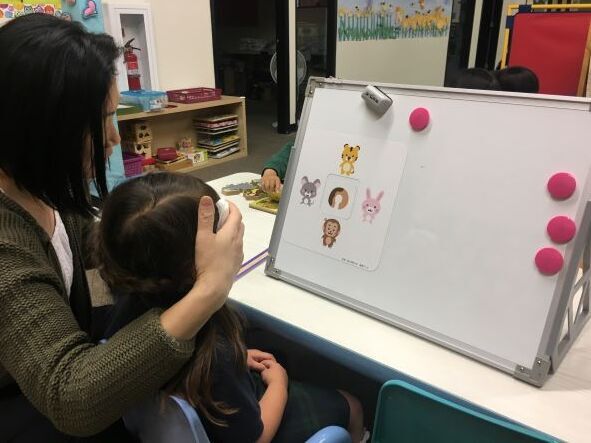 カリフォルニア州の日本人学校 Spring bridge 幼稚園で視力検査の練習