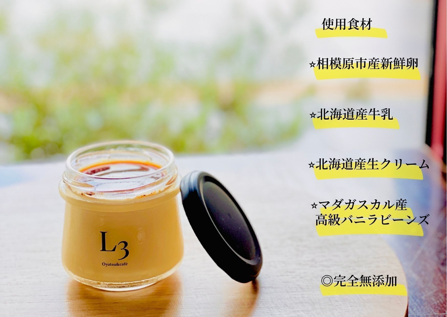 使用する食材は相模原産の新鮮な地卵、北海道産牛乳と生クリーム、マダガスカル産のバニラビーンズです。厳選した食材を使いフレンチシェフがひとつひとつ手作りしています。