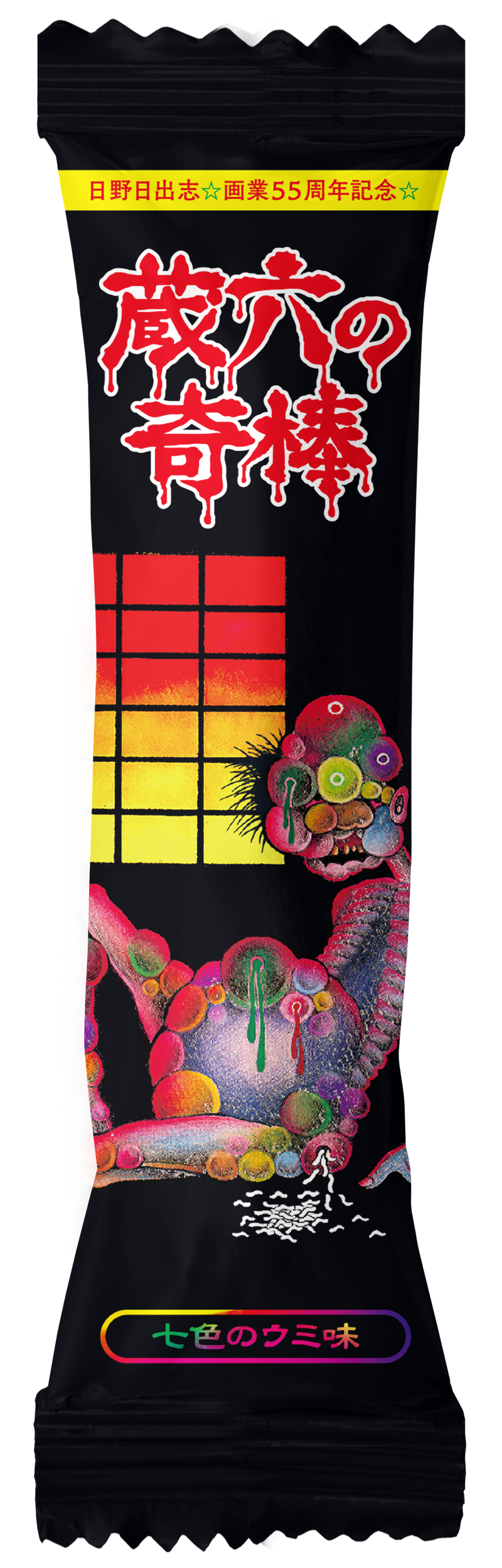 『蔵六の奇病』がデザインされた5,000本(500袋)限定生産の貴重なスナック菓子です。