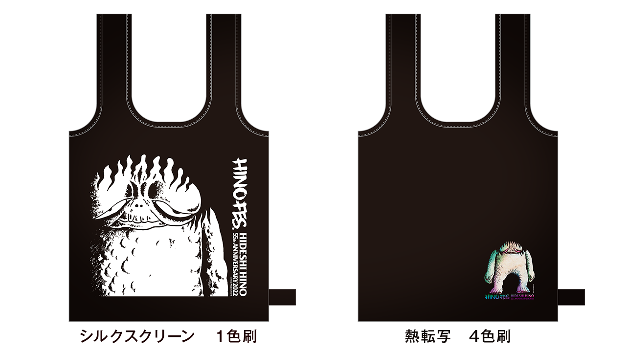 『恐怖のモンスター』(1983年、ひばり書房)がデザインされた、たためるショッピングバッグです。サイズ:横幅370mmx高さ370mm(持ち手含む高さ570mm) 色:黒