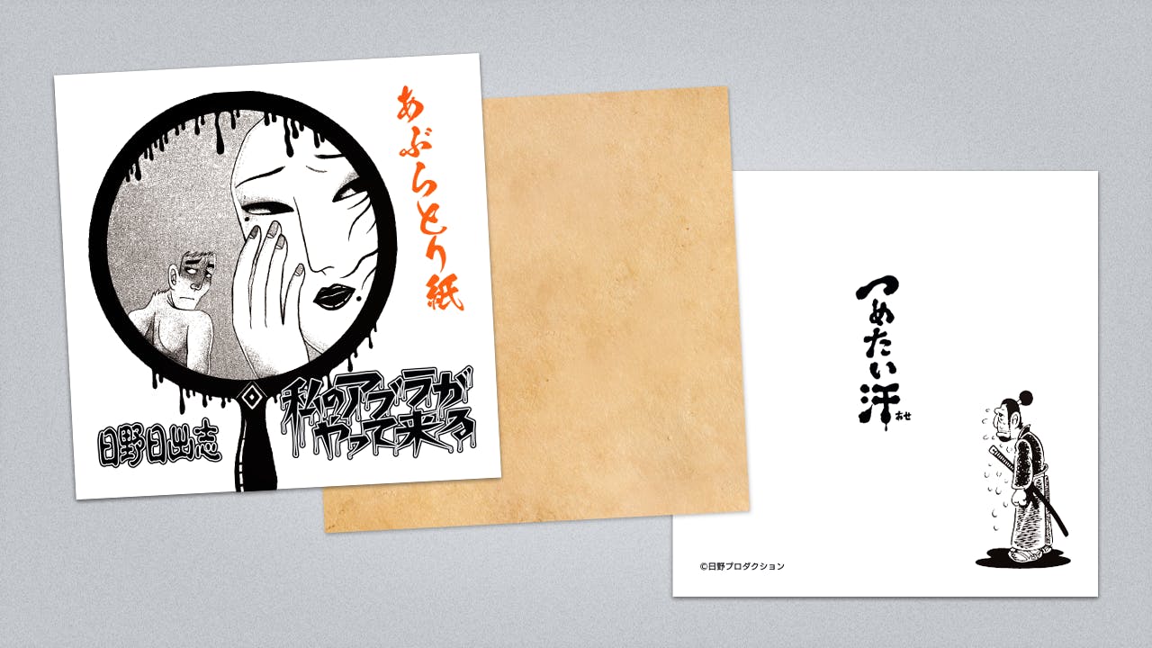 『日野日出志のあぶらとり紙』5冊セット(1冊 20枚入り)をリターンとして追加いたしました。