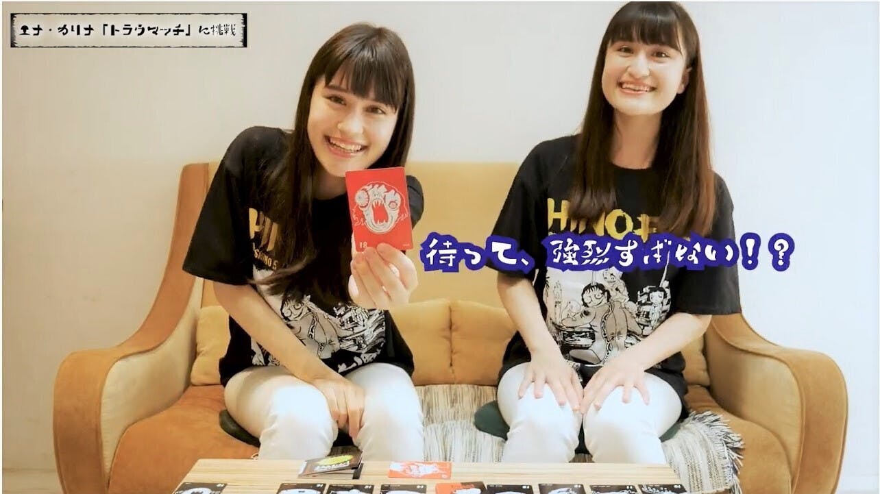 カードゲーム「日野日出志のトラウマッチ」に双子ハーフタレント西咲エナさん・カリナさんに挑戦していただきました。