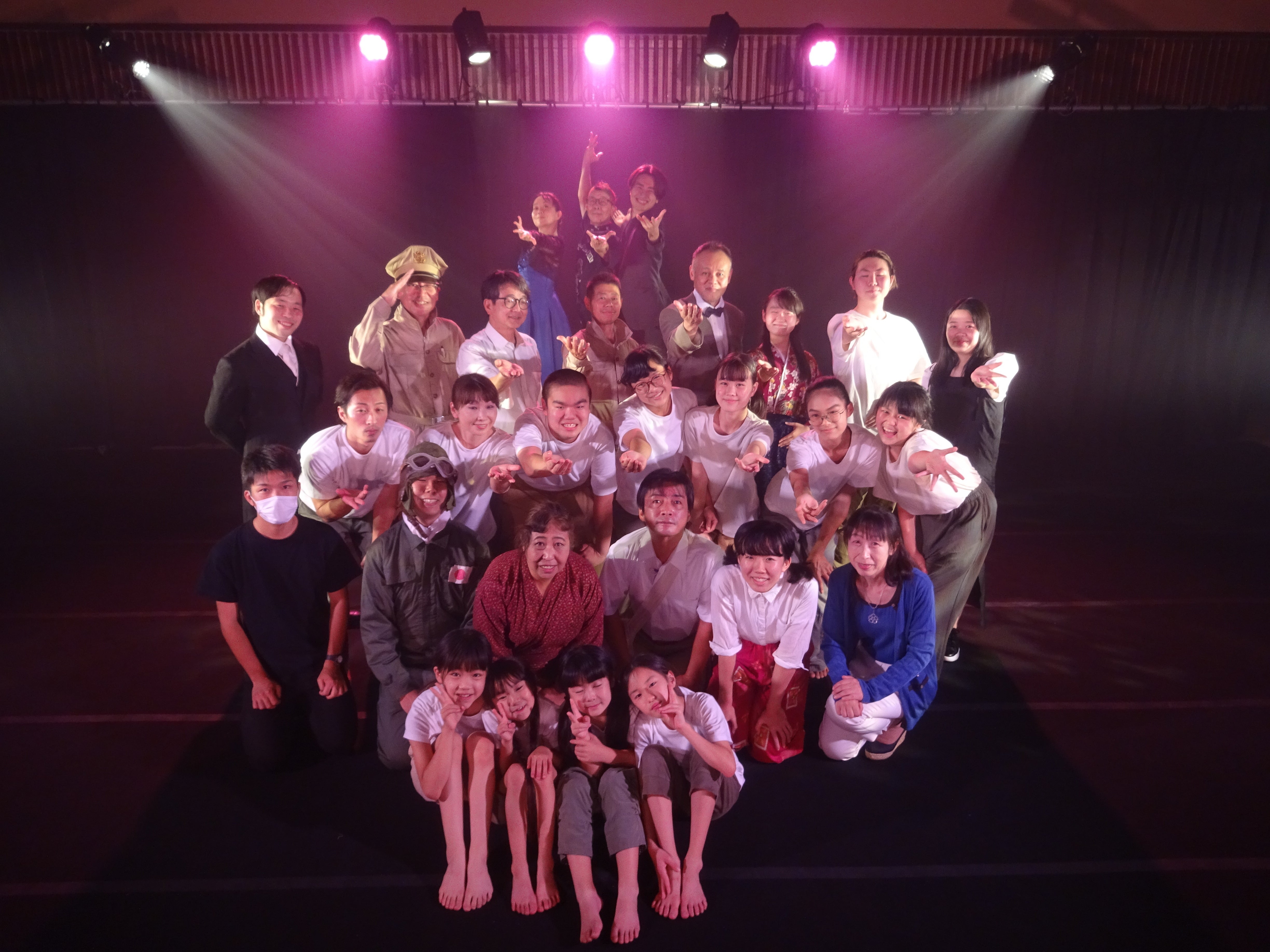 はじめまして、いとしまハローピースアクトです。数多くあるクラウドファンディングの中から、私どもの活動をご覧いただきましてありがとうございます。いとしまハローピースアクトは、「戦争体験といのちの大切さを語り継ぐ」というメインテーマを掲げ活動しているボランティア団体です。毎年8月6日に糸島市の文化拠点である伊都文化会館の大ホールにて平和劇を上演しています。活動のかなめは、小学校6年生以上のリーダー。それぞれの個性(いろ)を尊重し、子どもたちが主体となって活動しています。学習や体験を大切に参加するみんなで創り上げていく、お互いを認め合い、思いやれる優しい心、そして、お互いを支えあえる強い心をはぐくみながら、みんなで楽しめる場所を目指しています。