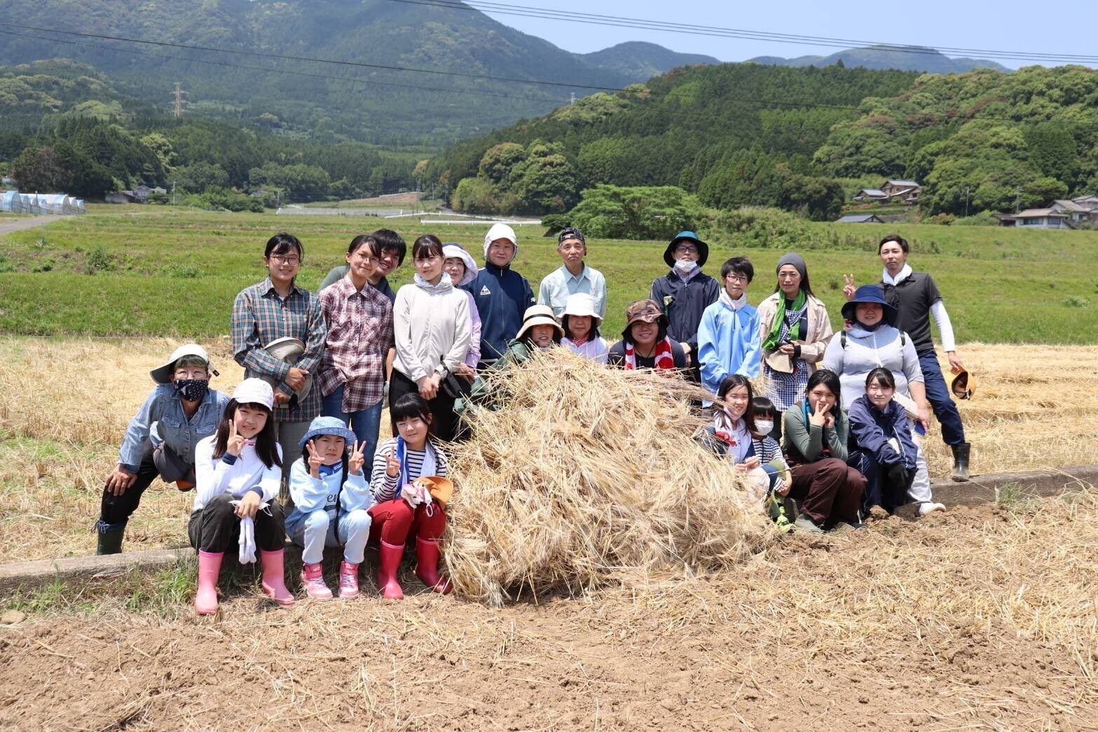 本来であれば、コンバインで粉砕しながらの収穫となるところを、私たちのために一部を残していただき、麦刈り体験をお願いしました。