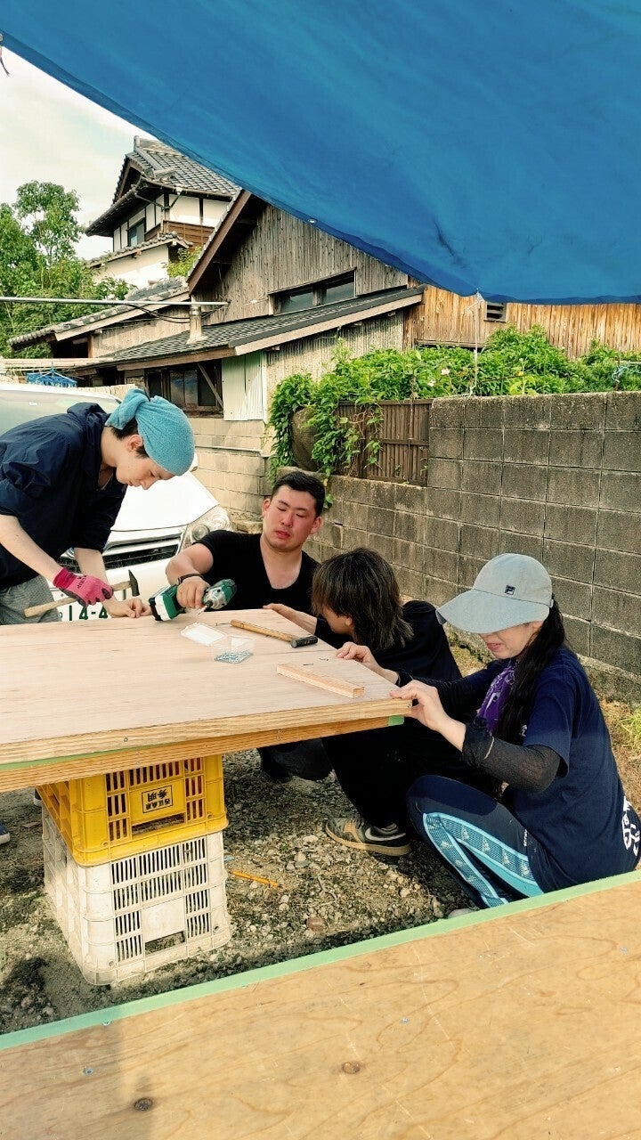 舞台上の演出のための大道具も自分たちで制作しています。梅雨の時期は屋内で、晴れ間がみえたら、炎天下の屋外で作業をしています。部分パーツを創り、舞台上で立ち上げるので、大掛かりなセットになります。今年はどんな舞台装置が現れるのか!お楽しみに~!